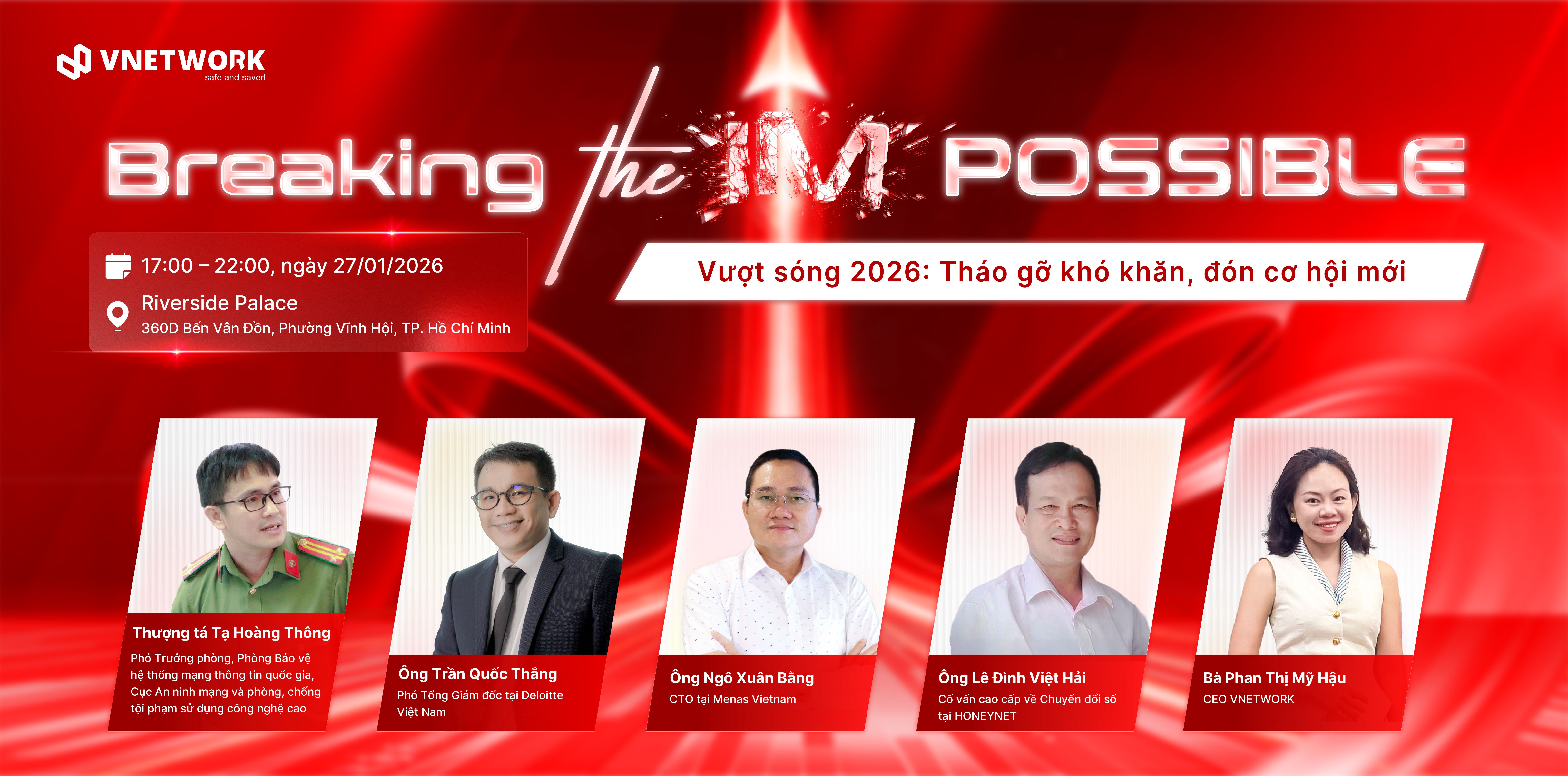 Breaking The Impossible là Private Meeting dành cho cộng đồng lãnh đạo doanh nghiệp. Chương trình tập trung vào việc nhìn thẳng những thách thức hiện hữu và chuyển hóa chúng thành cơ hội chiến lược, thông qua các góc nhìn thực tế về kinh tế, tuân thủ, chuyển đổi số và vận hành. Trong không gian đối thoại chuyên sâu, sự kiện giúp lãnh đạo xác định đúng ưu tiên, củng cố nền tảng quản trị và sẵn sàng cho những quyết định quan trọng của năm 2026.